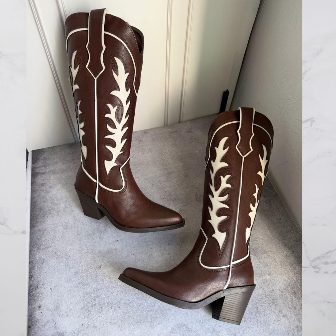 Las Cowboy Elegance Brown están diseñadas para destacar. Su silueta western clásica se combina con detalles bordados en contraste que aportan personalidad y un estilo sofisticado. El tacón estilizado brinda altura y estabilidad, mientras que su estructura ofrece comodidad para acompañarte durante todo el día.