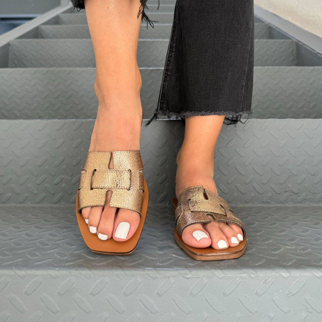 El modelo Capri - Oro Solar es esa chispa elegante que transforma cualquier look. Con su acabado metálico dorado y diseño artesanal, es perfecto para días soleados, brunch con amigas o eventos al aire libre.