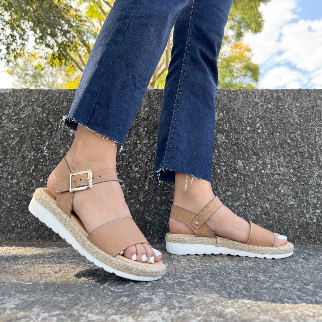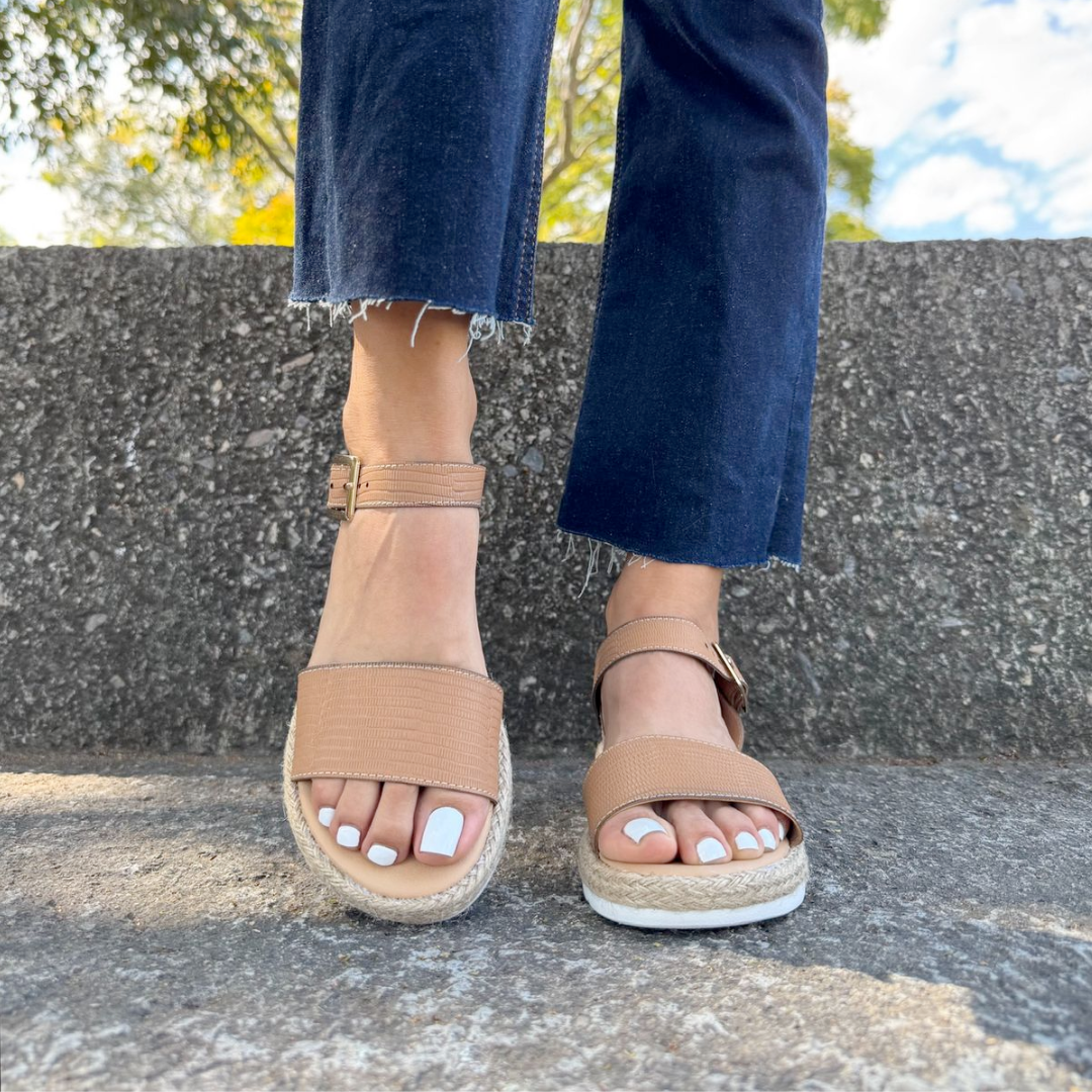 Sandalia tipo plataforma en tono neutro, perfecta para combinar con cualquier outfit de día.