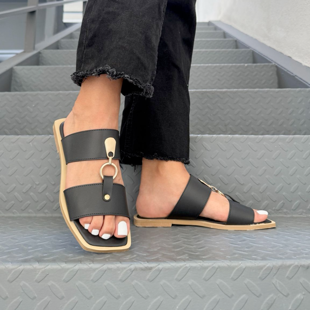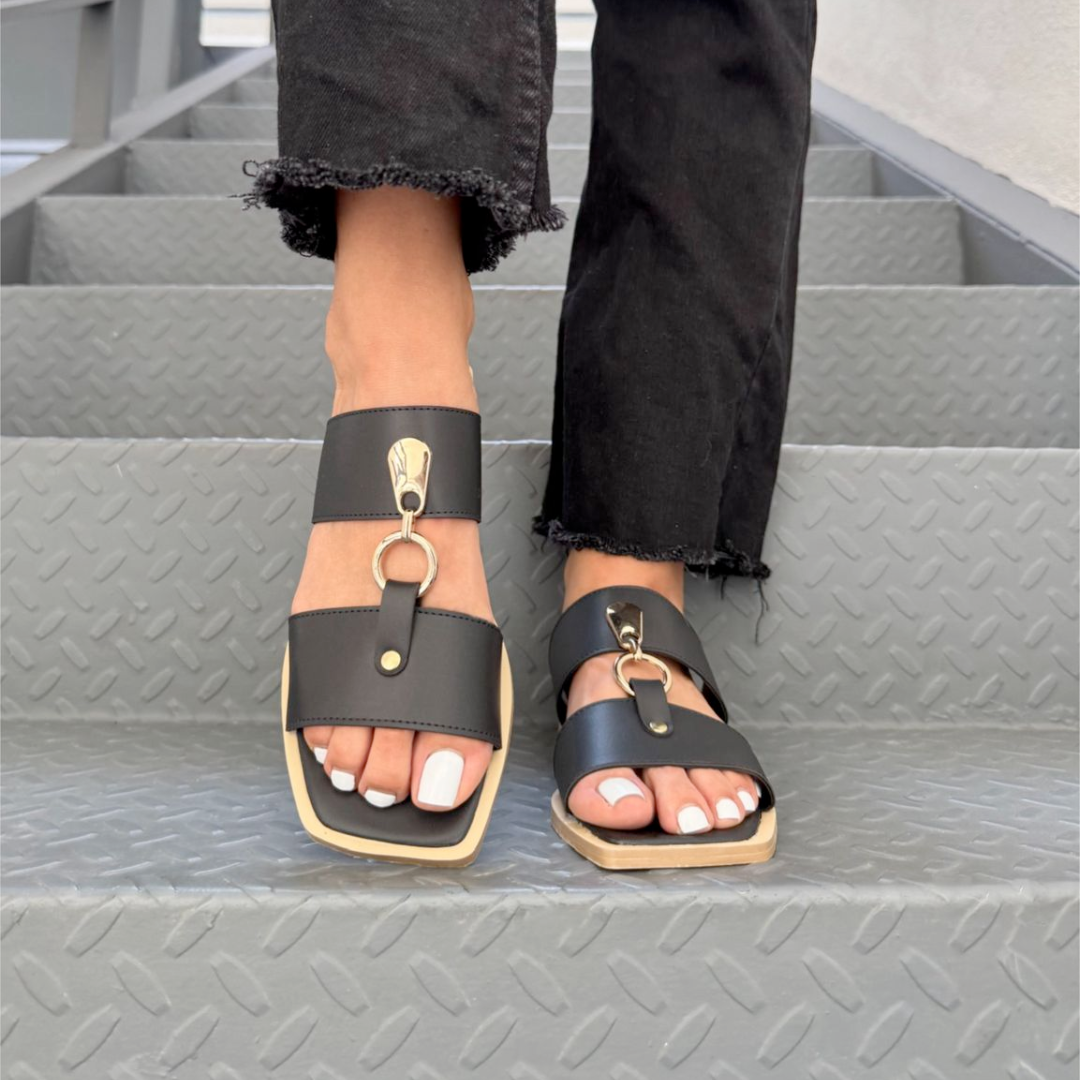 Sandalia cómoda y versátil en color negro, perfecta para acompañarte en cualquier ocasión.