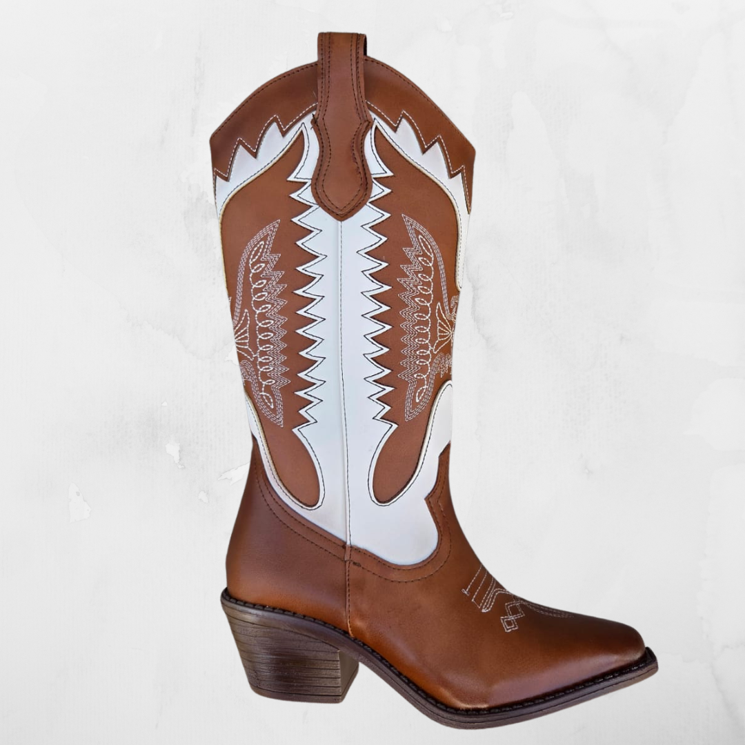 La Texas Camel es una bota de inspiración western que combina el estilo clásico con un diseño llamativo. Su color camel con detalles en blanco realza los bordados y le da un toque único que no pasará desapercibido.