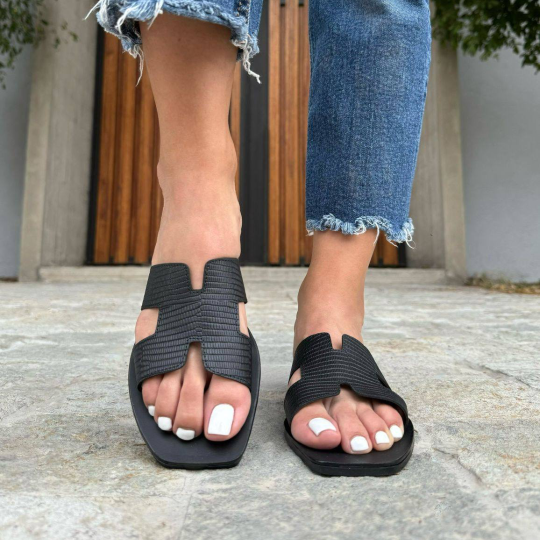 Sutil, moderna y con mucho estilo. Las 🖤 Black Aura son la opción ideal para quienes aman lo clásico con un twist. Su diseño plano con corte geométrico y acabado negro texturizado tipo piel combina con absolutamente todo.