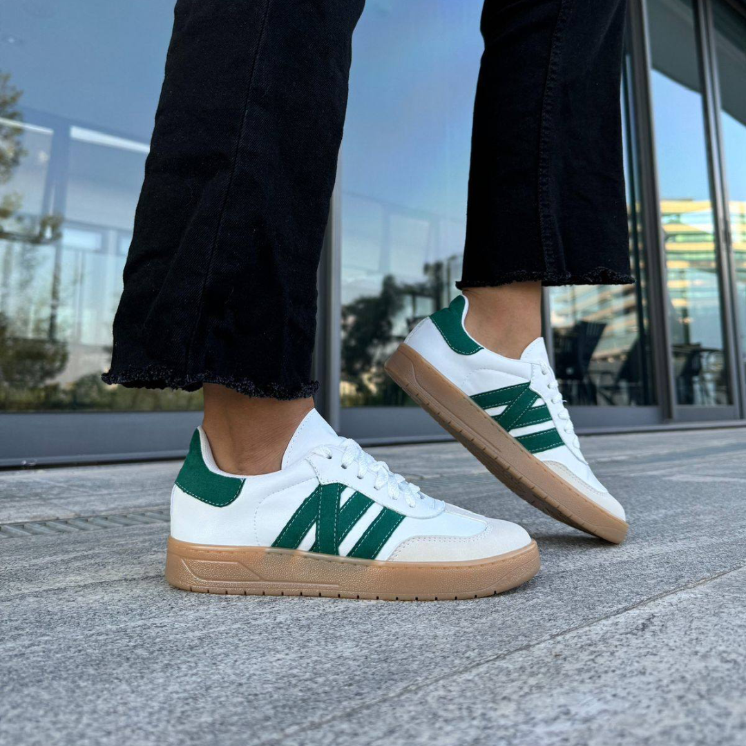 Limpios, modernos y con un toque de color. Los ✅ White Blaze destacan por su base blanca con detalles en verde y suela tipo goma que brinda estilo y comodidad. Perfectos para combinar con jeans, joggers o looks relajados de fin de semana.